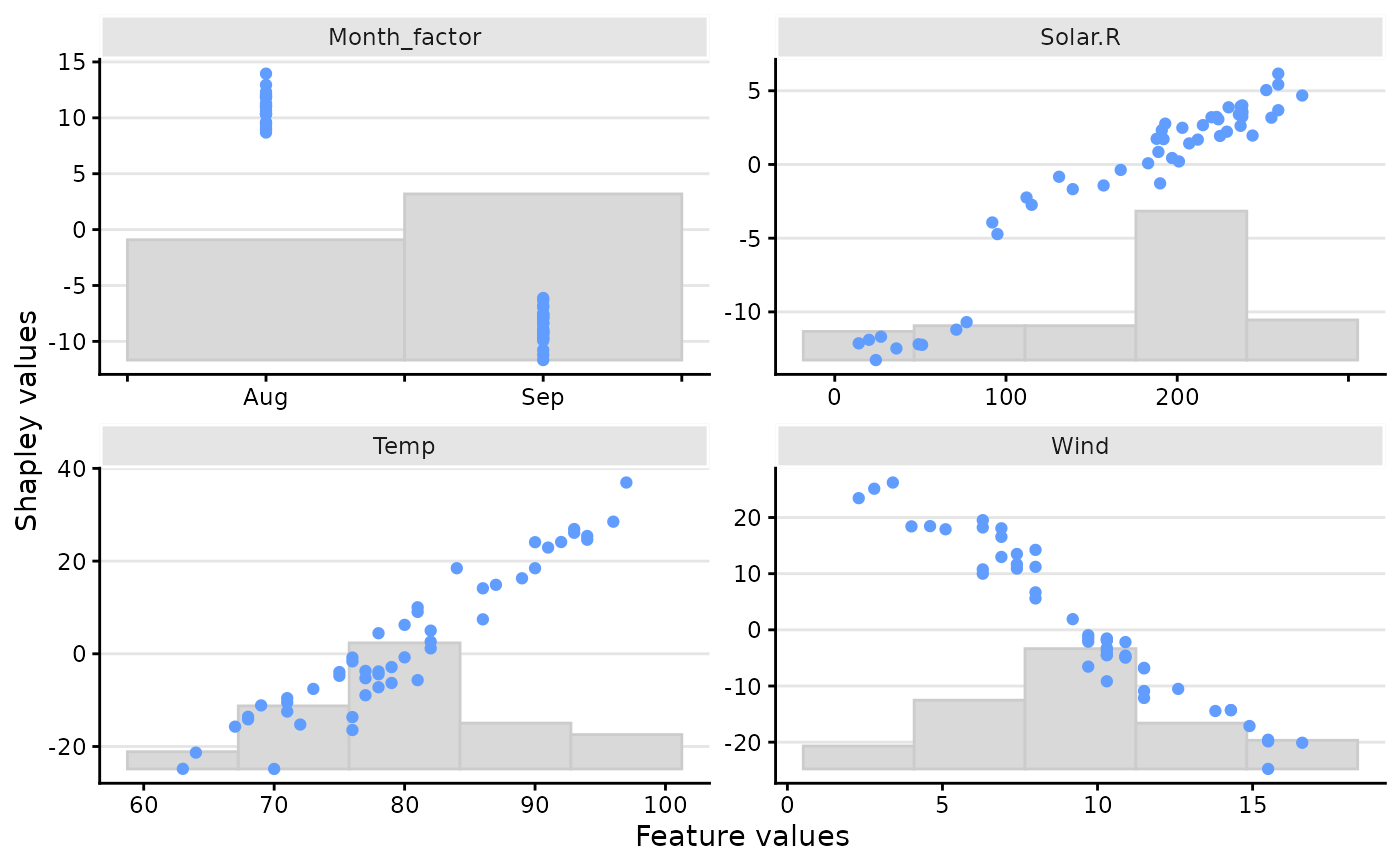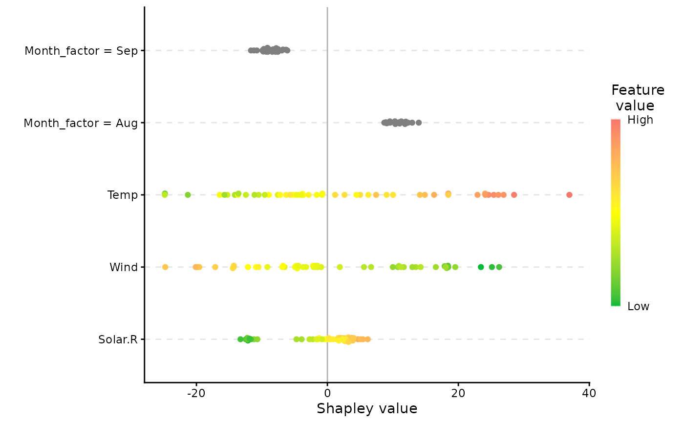 ggplotobject once it is returned. The default isTRUEwhich ensures the plot is always displayed also in loops, functions, when sourcing a script, and when assigning the output to a variable likep <- plot.shapr(...). Seeggplot2::print.ggplot()for more details. If you wish to further modify the returnedggplotobject outside ofplot.shapr, we recommend settingprint_ggplot = FALSEto avoid force printing. See the examples for a practical use case.- index_x_explain